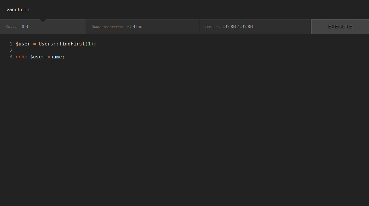 $user = Users::findFirst(1); echo $user->name;
