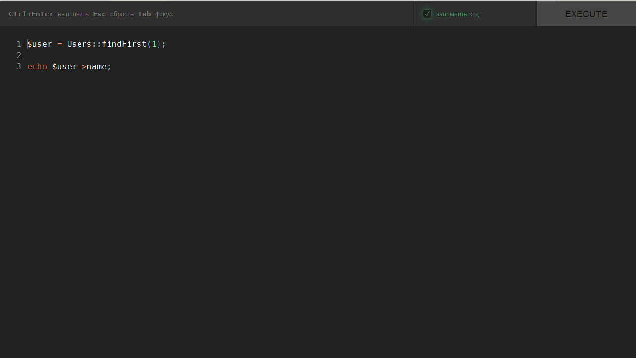 AJAX console to execute PHP code in the browser with light, the ability to save the last code execution, limited access by IP address
