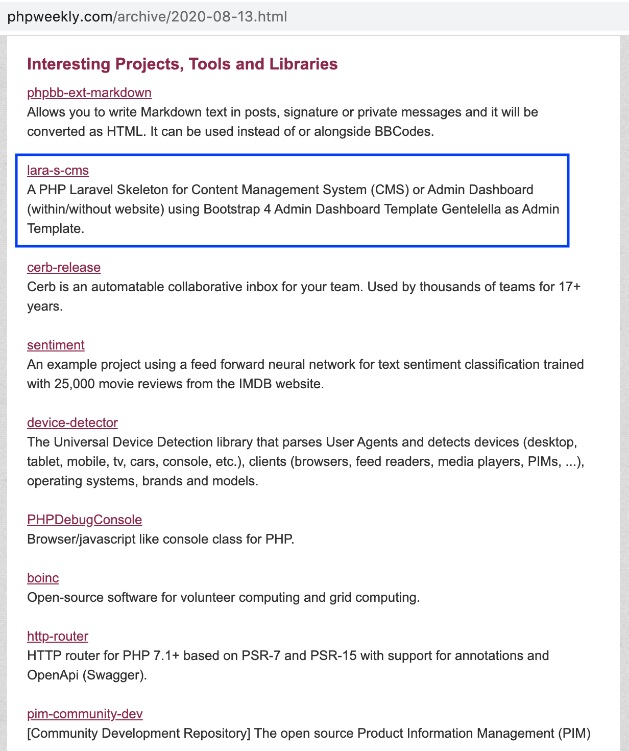 Lara-S-CMS has been featured on