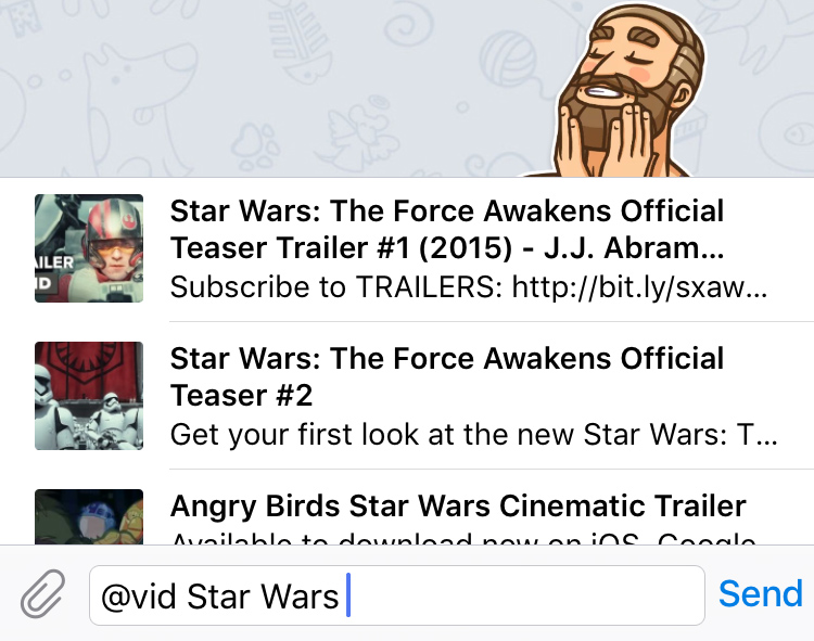 The following methods and objects allow your bot to work in inline mode. Please see Telegram Introduction to Inline bots for more details. To enable this option, send the /setinline command to @BotFather and provide the placeholder text that the user will see in the input field after typing your bot’s name.