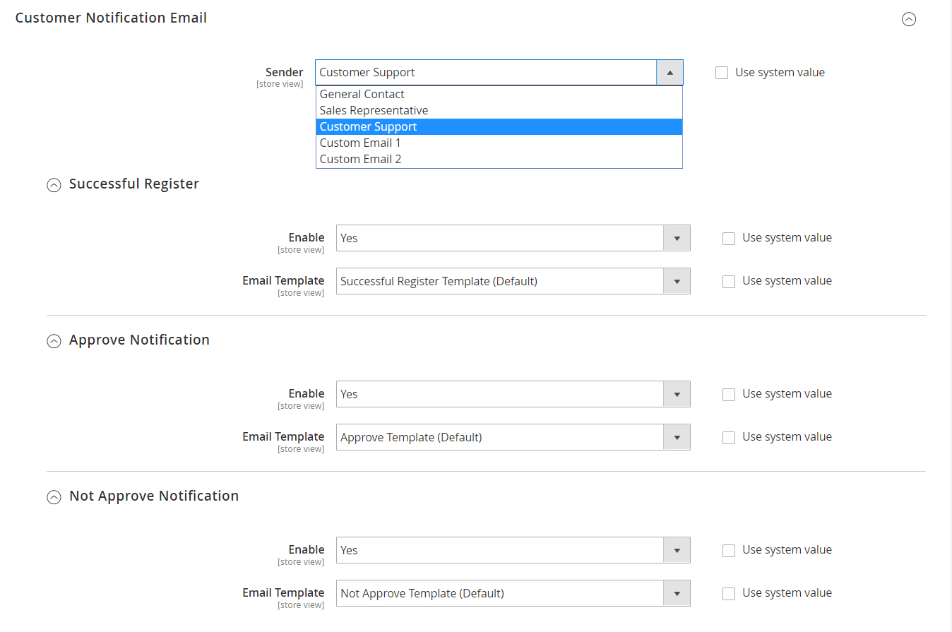 Email Template: Choose an email template to notify customers when approved with a registered account. You can go to