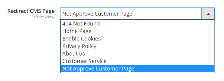 Redirect CMS Page: Select to redirect to the Not Approve Customer Login page: