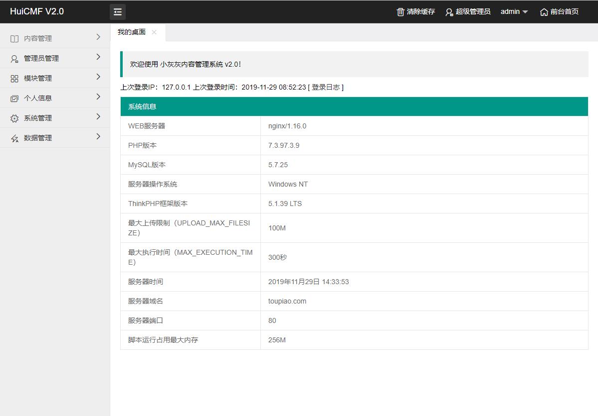 HuiCMF 的运行环境要求 PHP7.0 以上。