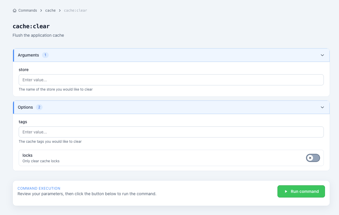 'command_whitelist' => [ 'cache:*', 'queue:*', ],