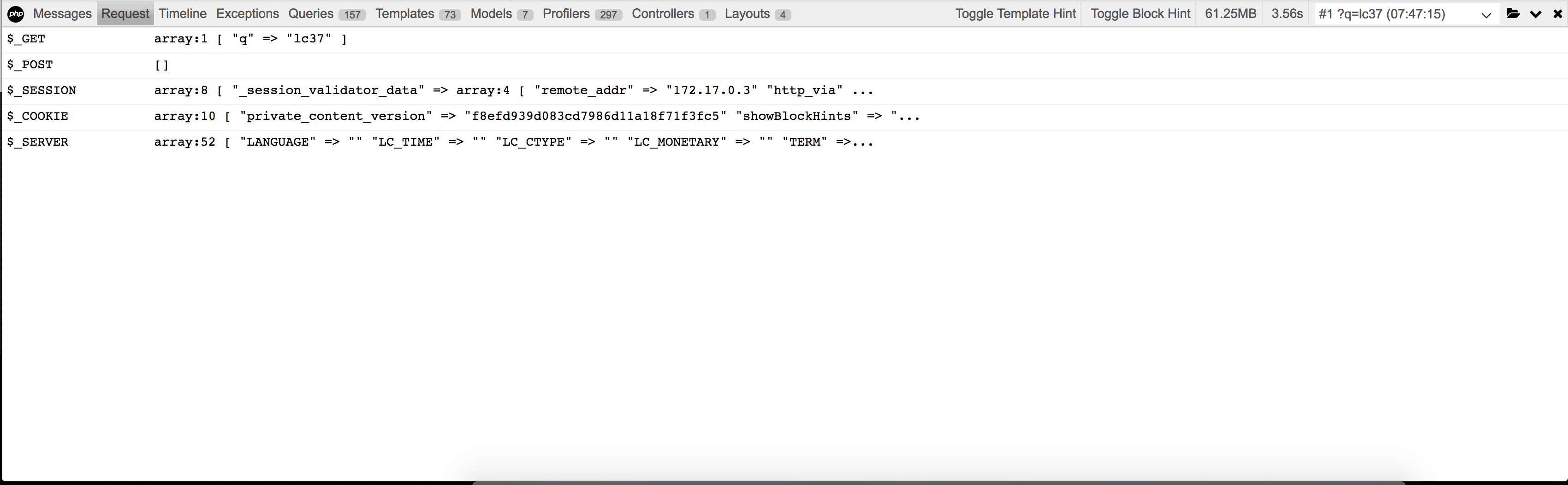 - RequestCollector: The default RequestCollector via PHPDebugbar